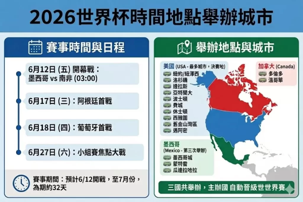 2026世界盃時間地點舉辦城市