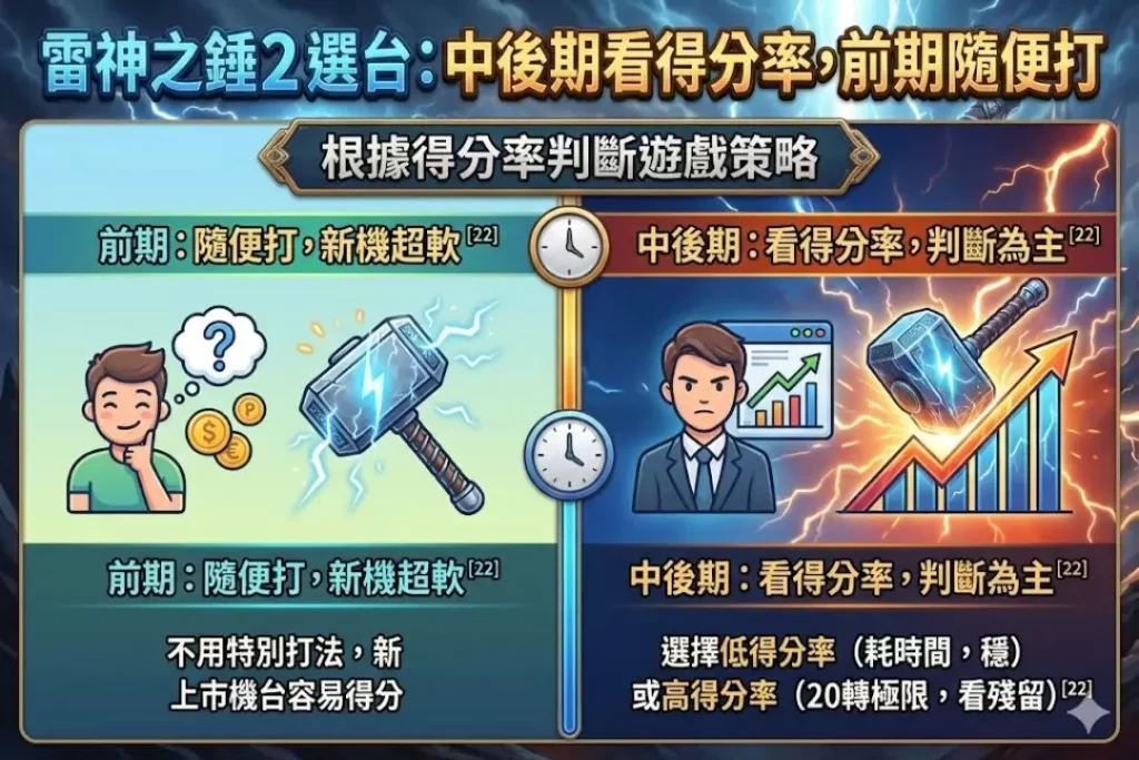 今天不論是雷神之錘2還是其他老虎機都好,只要可以讓玩家進行選台,那麼選擇低得分率的共同打法就是透過時間去累積,線上老虎機的機制就是看玩家停留時間、打的次數,所以選擇得分率低機台就是用最低金額慢慢打,耗的時間只要越長越穩,賺的獎金不多但好在穩定。