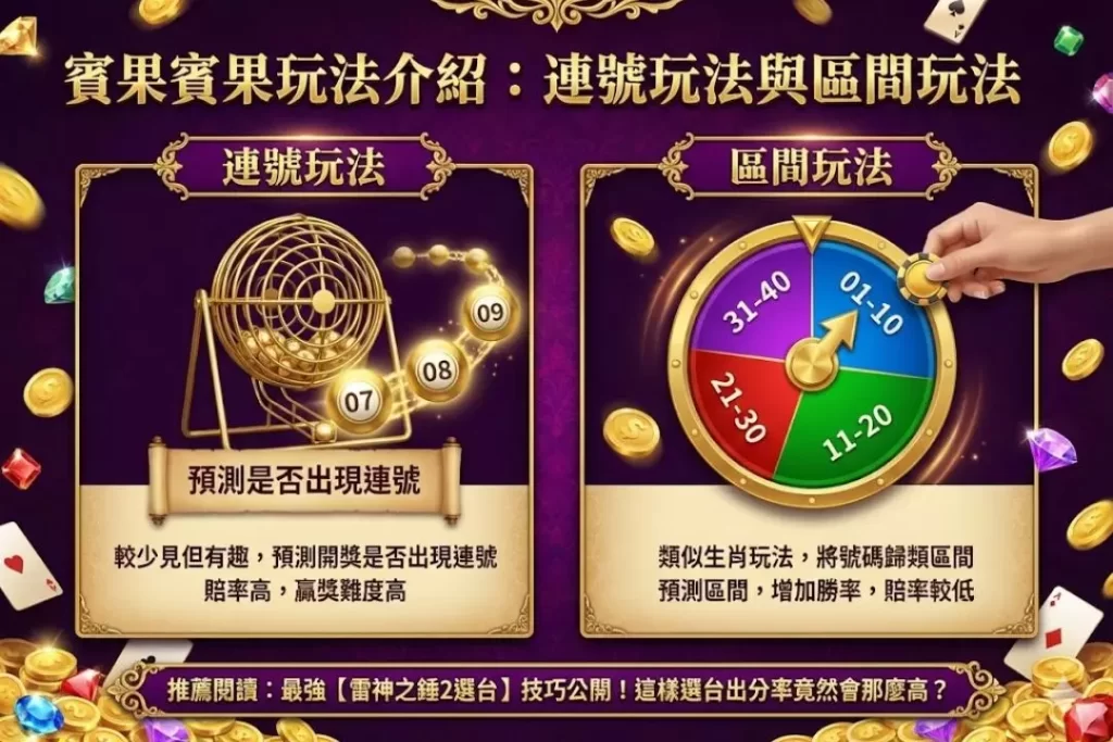 賓果賓果玩法再者看到連號玩法跟區間玩法,主要就有趣程度,像是連號玩法就是預測是否有連號產生,會產生的機會比較低一點,所以相對的賠率就是比較高一點,區間玩法則是跟生肖有點相似,主要還是看開講跟你下注區間是否相符這樣,可以說是相當有趣且好玩!